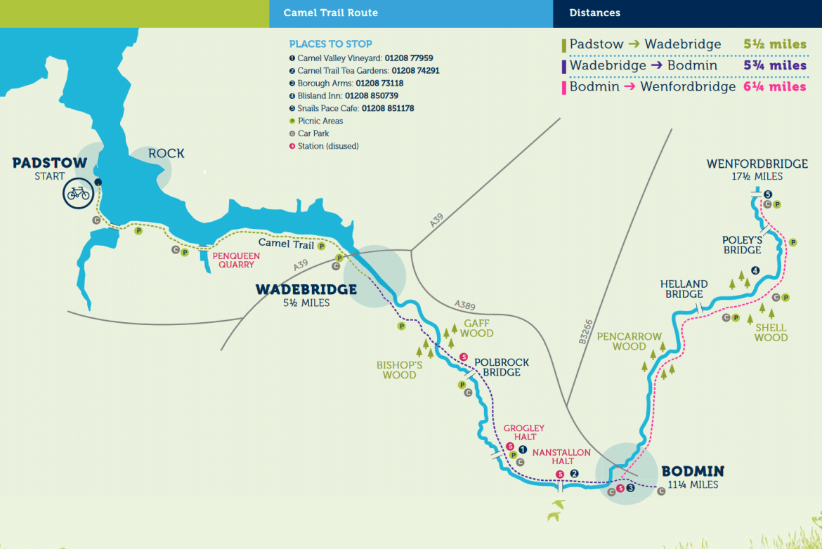 The camel trail is only a mile away offering 18 miles of level walking or cycling along the old railway track all the way to Bodmin and Padstow.
